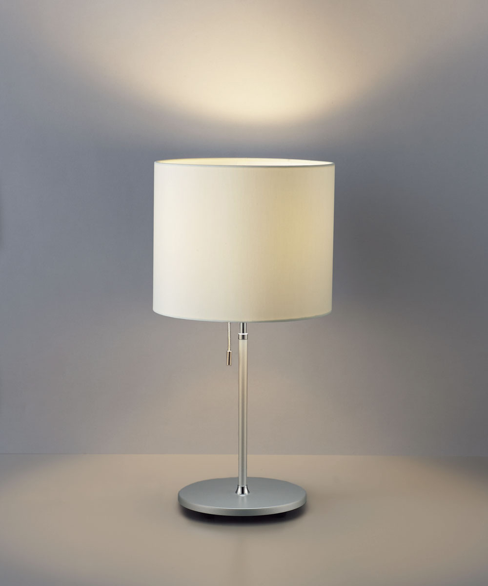 セードの色が選べるテーブルライトスタンド。またカスタムメードでお好きな生地からもセードが作成できます。照明と空間インタリアのトータルコーディネートが可能です。シルバー色の細身の支柱は上品。支柱のトップにクロームメッキのアクセントを付けさらに上品に仕上げました。